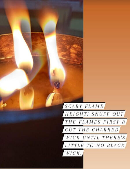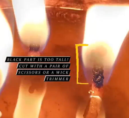 This is an example of a wick that needs trimming! When the black part of the wick is too tall, cut it off with a pair of scissors or a wick trimmer.